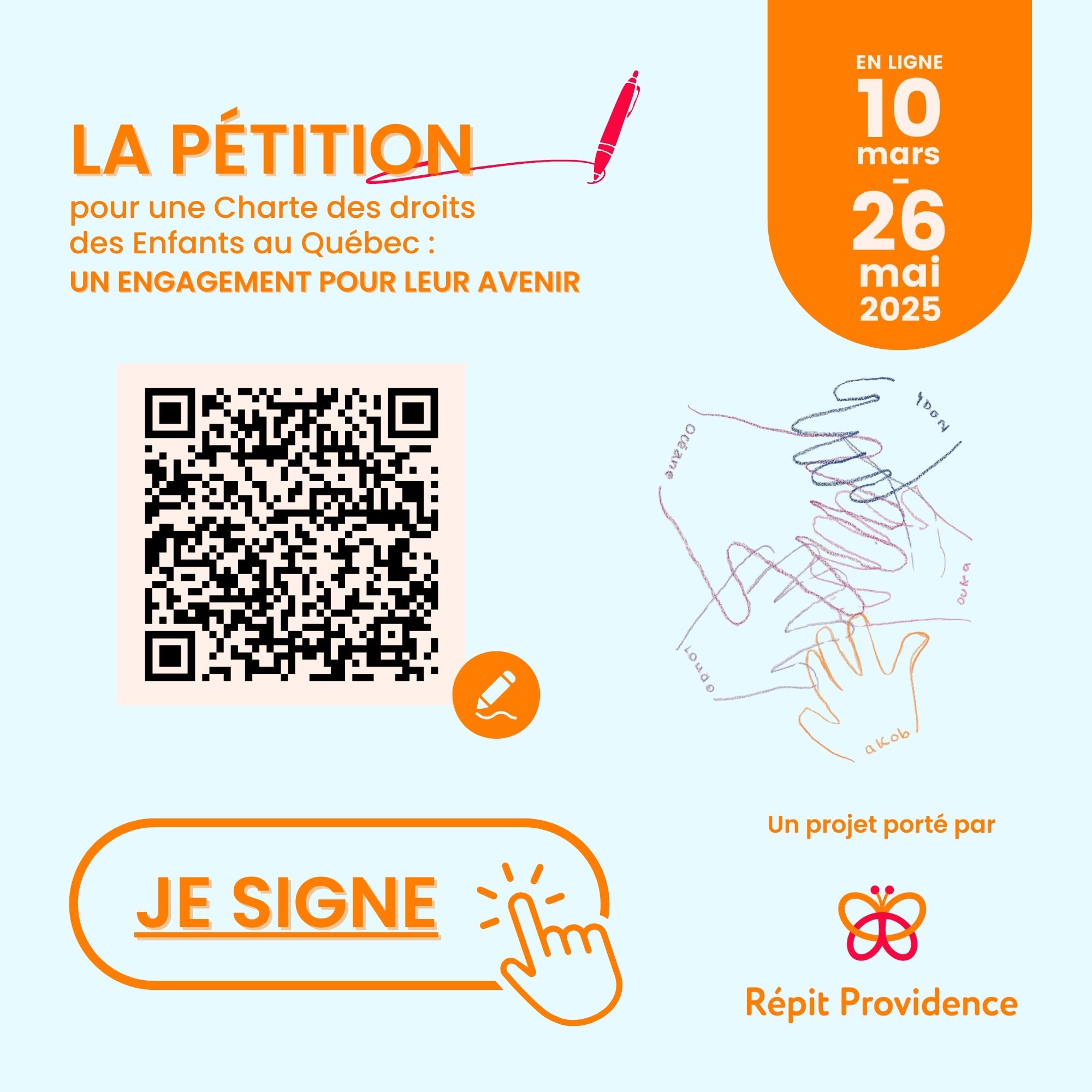 La mobilisation autour de la Charte des droits des enfants s’est intensifiée lors du Grand Forum 2024 de Répit Providence, où les discussions avec nos partenaires ont souligné l'urgence de renforcer la protection de l’enfance au Québec. Inspirés par le rapport de la Commission Laurent, nous avons lancé une pétition le 10 mars 2025 visant à faire adopter la Charte par le gouvernement québécois. Cette initiative marque une étape clé dans notre engagement collectif pour les droits et le bien-être des enfants.